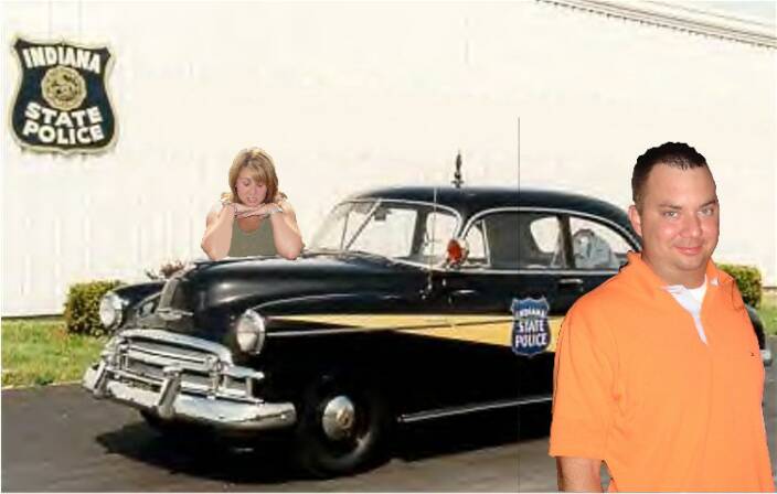 The Richeys take a spin in one of Indiana's standard squad cars