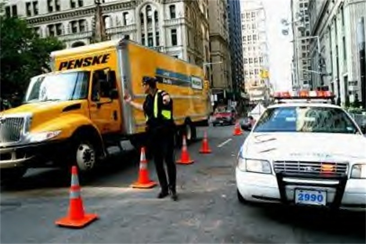 A TRUCK DELIVERING A LOAD OF INTERNET PAGES IS CHECKED BEFORE ENTERING THE KAMR COMPLEX