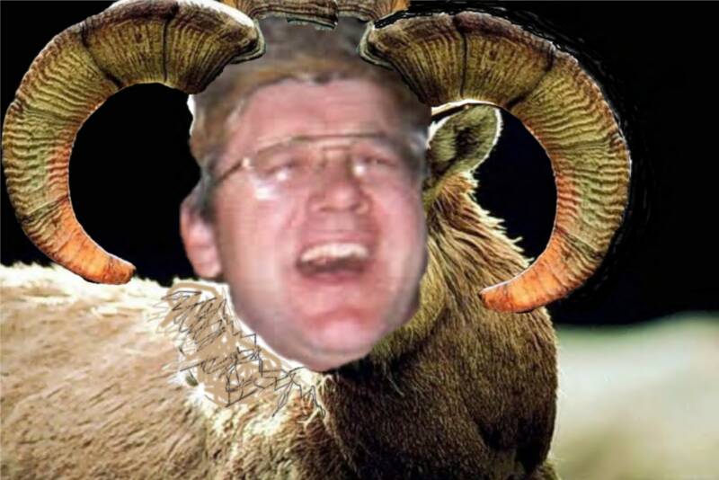 ARTISTS RENDERING OF DICK AS A BILLY GOAT WITH BAD BREATH AND HEMORRHOIDS