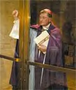 This week saw the installation of a new Bishop in the Green Bay Diocese. Bishop Zubik is probably a descendent of Liberace the well known piano playing performer. The unmistakable resemblance can be no coincidence the two share the same physical features and taste in clothing down to the snappy hats and cape. Although the sparkling performer never carried a staff such as the one the Bishop uses he was known to hang around with the staff after the show was over.