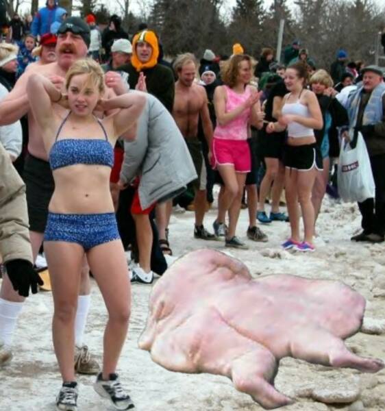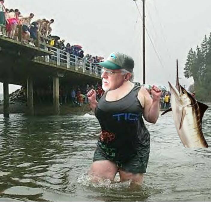 s has been the tradition in Jacksonport Wisconsin in Door County for the past 20 years now, The Jacksonport Polar Bears have taken to the sea for their New Years bath. Among the fierce animals that crave the cool New Year dip is popular Family member Tim Lade. Lade known best for his quick wit was without words last Sunday when the wind was taken from his sails, as it were, as he made his way into the icy Door County access to Lake Michigan. The procedure for all Polar Bears is to wade out into the lake until there is a sufficient depth of water to take a dive and completely submerge. Lade made his way out into the water far enough to make the dive however after a considerable amount of analyses on Lade's part he decided not to descend below the water line already marked on his ice encrusted suit. Lade made an about face and affixed his eyes on shore singling out his Joanie gazing at him in the sea. Suddenly while distracted looking at Joanie he stepped on an unfortunate jelly fish and slipped as if he had stepped on a banana peel. As he went crashing into the sea he fell over the top of a passing marlin that had gotten too close to the silver giant. The sharp dorsal fin on the back of the marlin made a small incision in Lade's belly letting out all the hot air trapped inside. Lade now loosing his buoyancy and his swim suit struggles to get back to shore and eventually washes up on the banks with the incoming current. A crowd of onlookers stared in amazement as Lade lay in pool of flesh on the beach trying to gather himself up along with the rest of his pride so he could make his way back to the hotel to pack for the return trip to Allouez. Lade who was eventually helped by his wife, Joanie (number 4) made his way to the car where he had extra clothing and a repair kit to fix the puncture. In minutes Lade had inflated himself to the exact size he was before the incident and had donned the spare clothing in his car. Lade has not commented on whether he will attend next years Polar Bear Club event in Jacksonport.