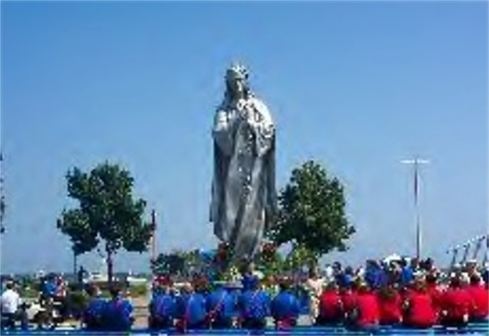 40 FOOT HIGH MADONNA MADE FROM SCRAP IRON AT FESTA