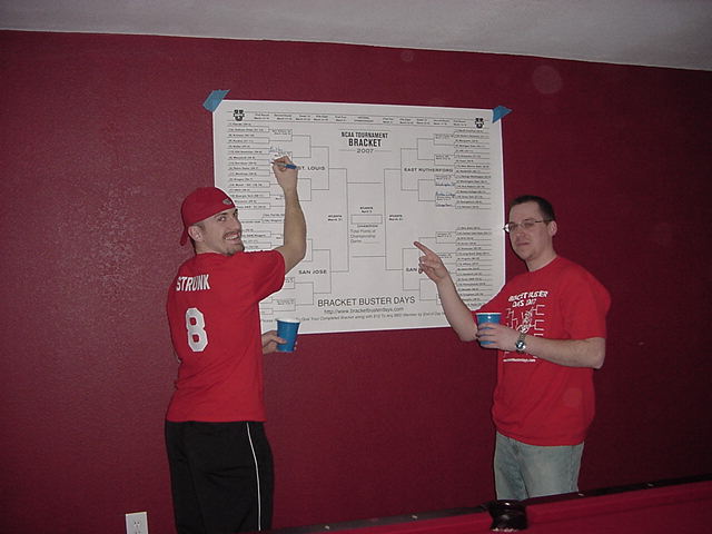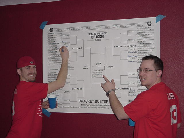 Jason Schmunkey said he is in charge of the bracket board and makes it up and has it printed at Kinkos, only he is allowed to make the updates.