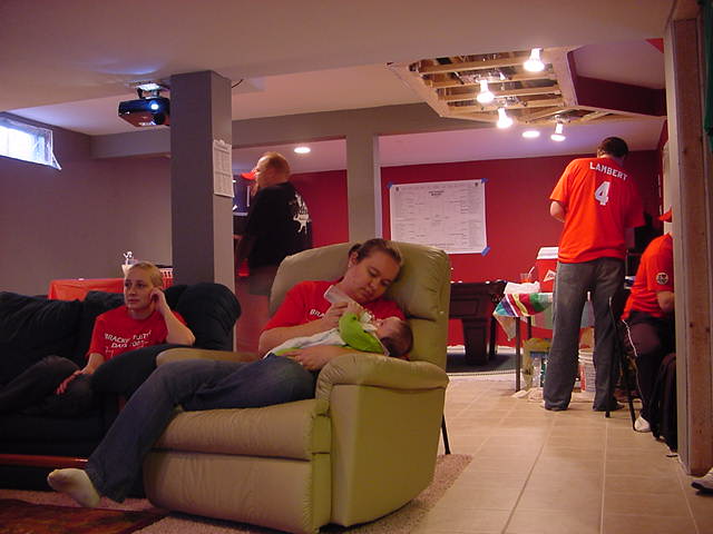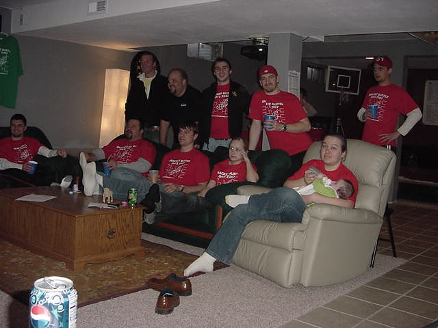 After months of preparation and remodeling Brandon Pickett finally successfully celebrated "Bracket Buster Days" at his home on Lindale Street in Ashwaubenon. The celebration which had been planned since last years March Madness began with a remodeling project which would occupy Brandon's time for most of the winter. Pickett transformed his basement which had minor improvements made by the former owner, to a delightful plush rec room capable of entertaining the most critical of guests.