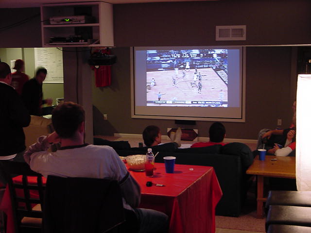 television feed, DVD feed, or computer feed. Complimenting the projector was the addition of surround sound complete with special speakers wired in near the screen painted on the wall. As if that were not enough a talking dart board was added to keep people busy between games.