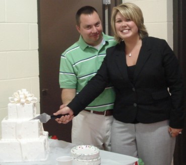 Many people traveled great distances to come to the celebration with people from as far as Florida attending. I know of one couple that drove from Tomahawk WI and still others that drove from Pulaski. As the festivities drew to a close the bride and groom along with the Lade's gathered tables and chairs to return them to the proper places and began the process of cleaning the facility, guests that lingered were pressed into service as well helping the wedding party clean up.