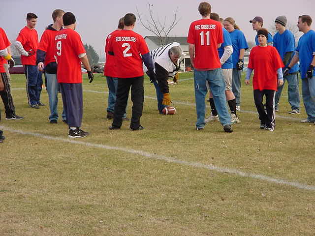 People coming in for the Turkey Bowl have been phoning in their reservations for accommodations with Cheryl and Steve Purshock staying right here at the KAMR offices. The KAMR office complex conveniently has a living quarter's section which will serve them well. They along with Jeremy, Cheryl's son and Jessica Steve's daughter, will arrive about 5 or 6 PM on the eve of the Turkey Bowl. Because of personality conflicts between Steve and Jeremy it is unknown if Jeremy will be able to sustain life throughout the whole trip. It is possible that they may have to pull into rest stops several times to duke it out during the trip. Dave Poquette is also expected to arrive on Wed. with a female acquaintance also named Cheryl. It is thought that they will be staying at Dick Poquette's house through the weekend. Conflicts are not anticipated in their trip. John Poquette will be detained and unable to attend the Turkey Bowl. Aimee Poquette will also attend the event with her boyfriend in tow who also is a key player in the sporting event. The airport informs us that the incoming flights for that day are booked solid ensuring a sellout crowd once again for TBIV. Once again field preparation will begin at 9:00 AM Wed. November 26 at Poquette Field, if you want to assist. That's all the news that is news, see ya.