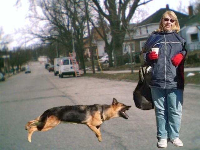 Kat about to be bitten by ferocious neighborhood dog while on her walk