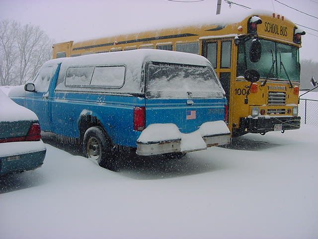 Snow falls on vehicles parked in the drivewy of the KAMR