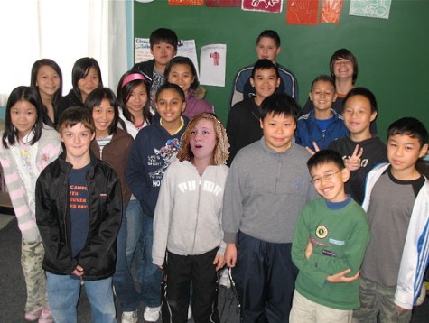 Megadeth stands with her sixth grade class of which she is one of the shorter