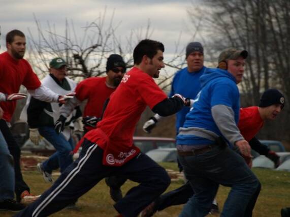 of scrimmage every time. Sobieck who also scored one of his teams four touchdowns in the game also received MVP for this years match up. It was originally thought that Sobieck would be the most likely to limp off field nursing an injury but in the heat of the moment he was able to walk off any pain he had during
