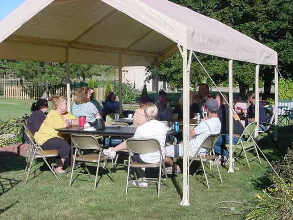 Cooking for the all day feed bag was nearly completed when The Kat and this writer arrived at the site of the party located at 5171 State Highway 29 in the town of Eaton (appropriately named if you saw the food table). Hamburgers, bratwurst, and hotdogs filled electric warming containers located up and down one whole side of the stall and a half garage. A host of cold salads, potato salad and fruit bowls rounded out the choices offered at the buffet style spread. With the popcorn popper in place sometime after most had eaten the machine was fired up and popcorn for everyone was available throughout the evening.