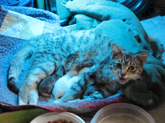 A quandary now exists as to what will happen to the mother and the kittens when they reach the age of separation. The cat and the kittens are available to anyone who wants them now but if there is no one willing to take the family then when the kittens reach the age of separation they will need to go to good homes. We do not want the mother cat as a pet and she is adoptable as well, the adoptee is responsible for spaying the pet.