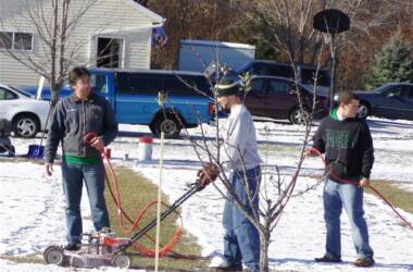 Alex Pickett, Brandon Pickett, and Andrew Purshock are seen here at TB VIII spraying lines "under the snow"