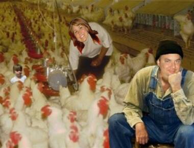 Feeding time is a family affair of the Richey's with Aimee and Anya joining in at every chance. Aimee often tends to the watering of the poultry while Chris feeds and counts the chickens on a daily basis. Anya often wanders off into the mob of chickens and after being pecked up a bit is rescued by either her mother or father from the angry and aggressive chickens. Richey's chickens grew extremely large in a short time which Richey attributes to the near by nuclear plant. Richey: "I can make a bundle if I can duplicate the size of these chickens every batch." Richey hopes to raise the chickens for butchering, and he has been talking to a certain fast food franchise about turning his cluckers into chicken McNuggets. Richey plans to have an assembly line of sorts on butchering day as he operates the axe while Aimee chases the running headless chickens. Anya will be charged with picking up the heads and putting them in a coffee can.