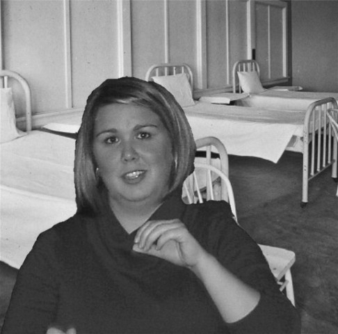 Aimee Richey showing a line of Hill Rom hospital beds.
