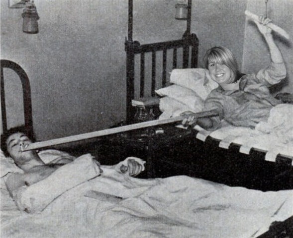 Aimee Richey poses for a promotional photo featuring a new device Hill Rom is marketing to allow people with broken arms to smoke in their hospital bed.