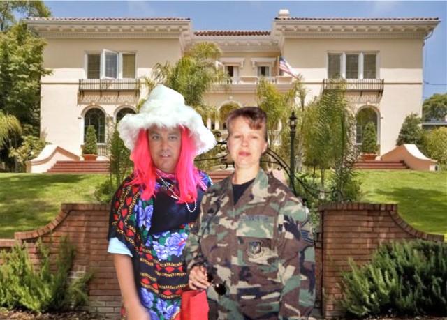 Clothed to fit the California life style Steve Purshock and wife Cheryl smile proudly as they show off the mansion they will eventually own.