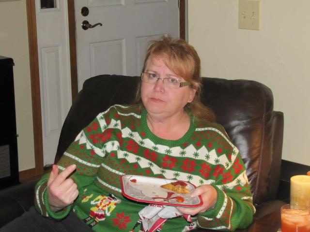 After dinner Happy Birthday was sung to Judy Treml who announced that her birthday had been the day before. Trixie ordered Kevin to locate some birthday candles and they were stuck in a cake I baked that afternoon for desert, the fact that it was pressed into service pleased me even more. While only Judy and I sampled the cake others consumed grasshopper drinks whipped up by Shelly Vanlanen. I abstained as did Trixie but Jean Poquette-Seidl downed all of hers and another made by mistake for Trixie. The drinks were served after the gift exchange and a short time after that Poquette-Seidl fell ill with a gastrointestinal disorder. Having had stomach surgery several years ago and knowing her limitations her sister Joanne Poquette asked her just why she went ahead and consumed the two sugary drinks knowing the consequences. Her reply: "Well you know me, I didn't want to be rude". The party went on for some time but was just about extinguished at 11PM.