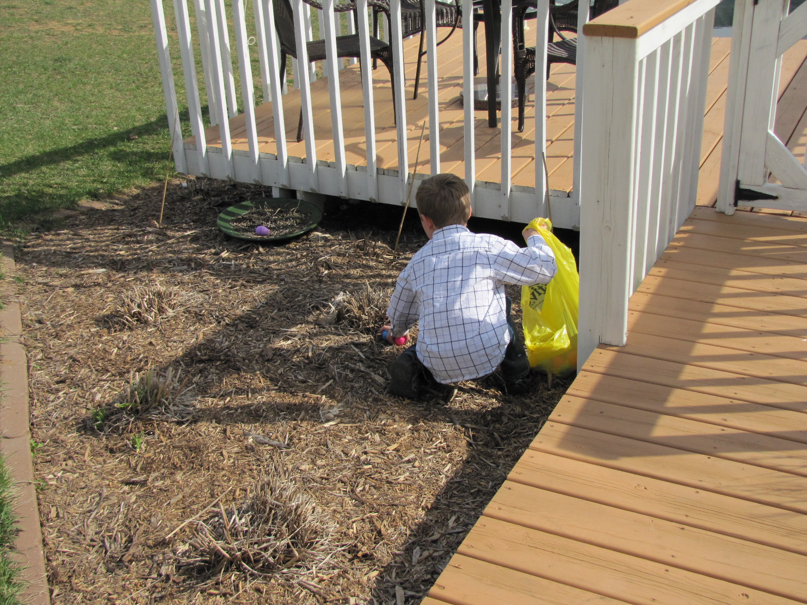 One lone egg hunter search's the deck for eggs filled with candy, this year an ipecac filled egg could displace a regular candy egg
