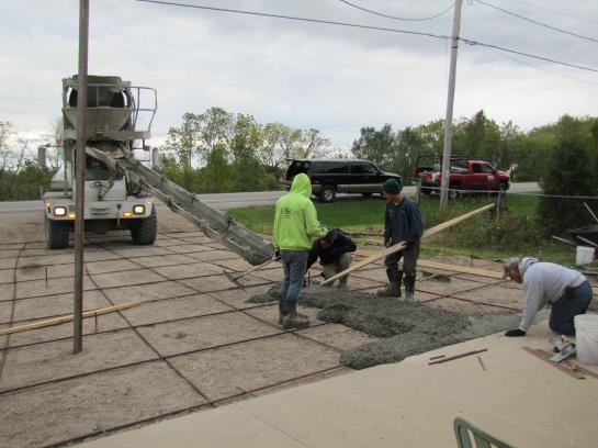 t was not the best day for touring in a convertible, according to Kevin Sobieck who instead of taking a drive up north to the north woods of Wisconsin and the Phelps area, found himself instead helping to pour concrete at the KAMR headquarters. Sobieck, a long time construction worker was pressed into service after preparing forms at the Vanlanen home.