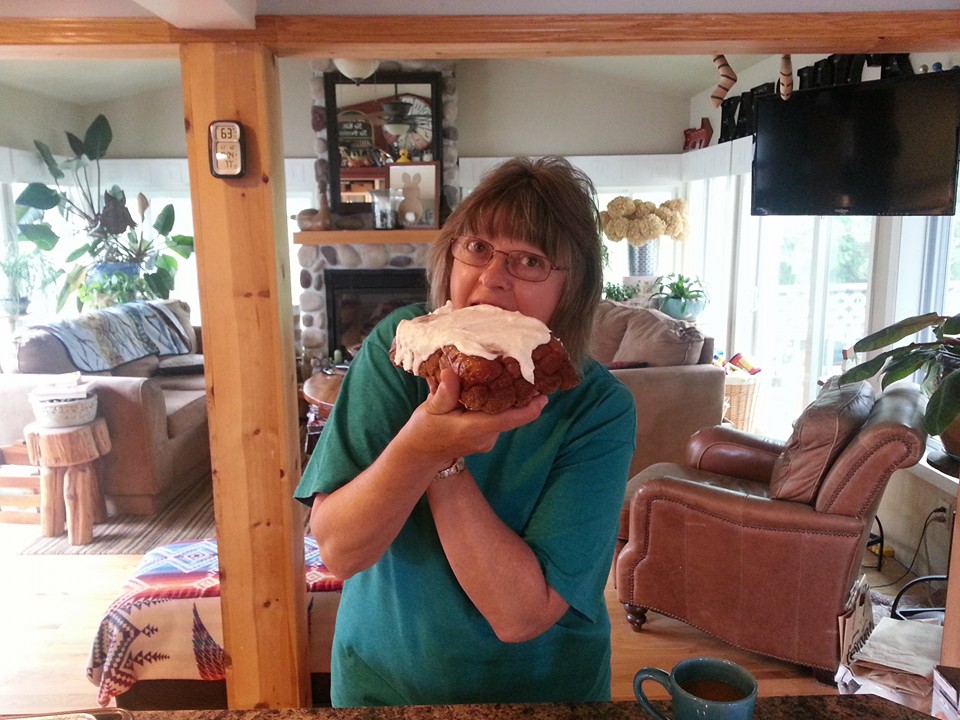 Faye enjoys the complimentary monkey bread