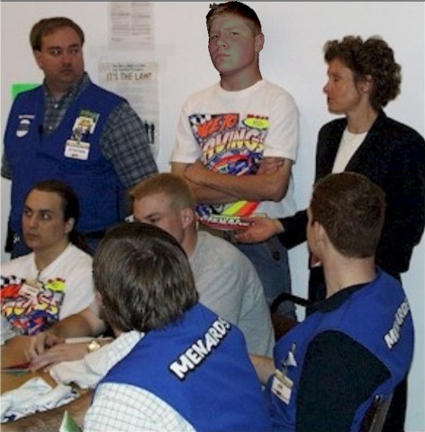 With no work available in the electrical distribution field Sobieck was forced to look for work in the retail sector. He did find work at Menard's Lumber and immediately won the hearts of those in control of the multi million dollar retailer. Sobieck was thrust out front of the store to welcome new guests to the facility as a good will ambassador because of his good looks and positive attitude. (See photo above)