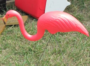 leen Poquette was the victim of theft over the weekend when she returned from a concert to find one of two pink flamingos adorning her campsite missing.