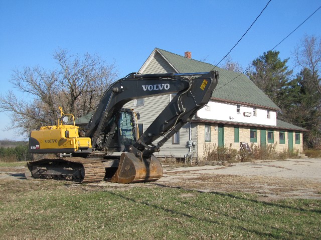 A backhoe stands ready and eager to claw at the 100 year old building which was one of Oneida's favorite eating spots of the 70's.