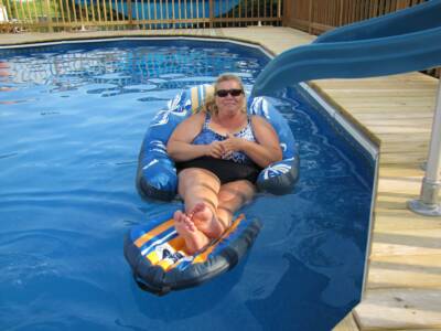 Eileen (Trixie) Sobieck enjoys a cool dip after last years golf outing