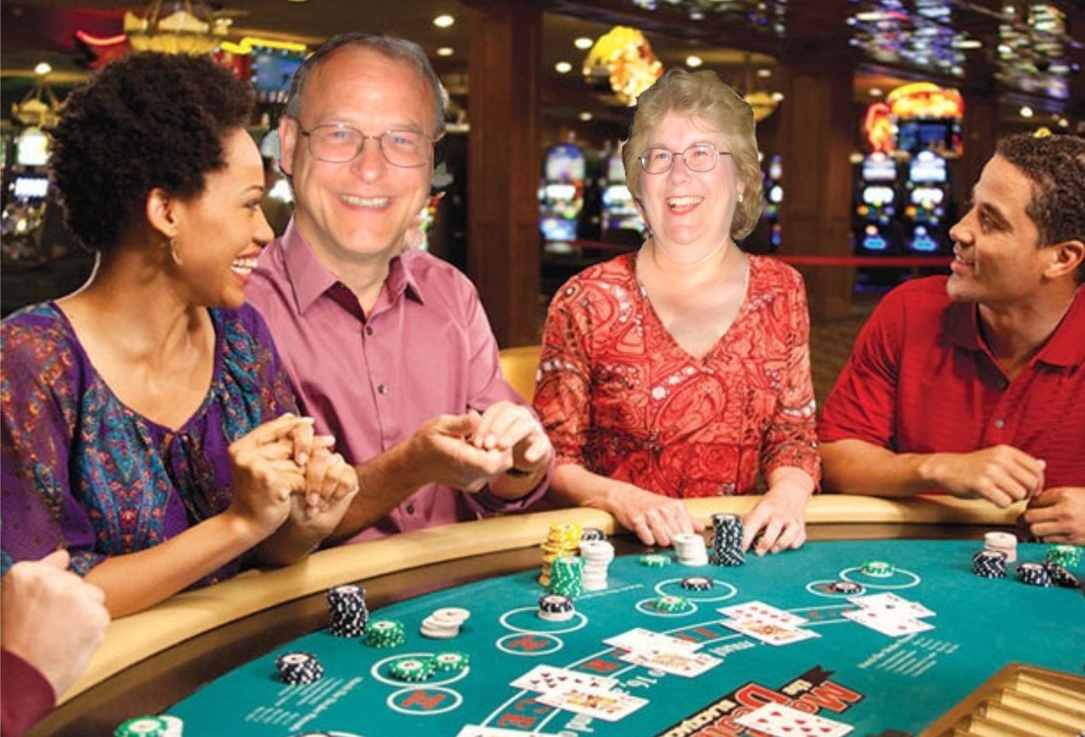 Dan and Peg Vanlanen pose for a photo with their new friends they made while gambling in Las Vegas Nevada