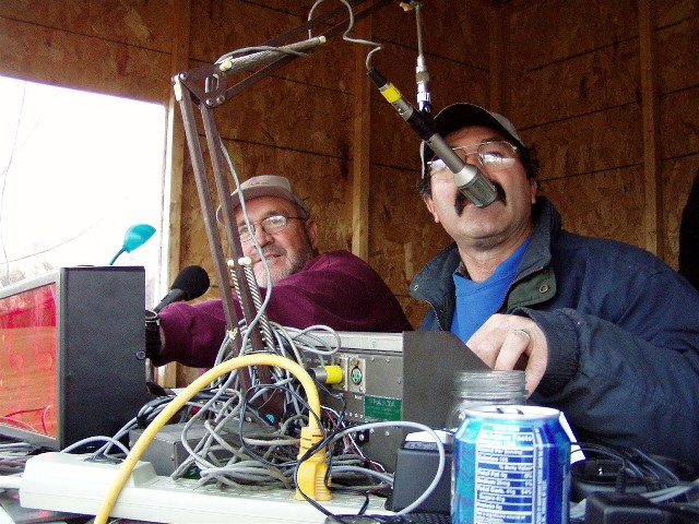 Dave Poquette seen on the left in the broadcast booth with this writer