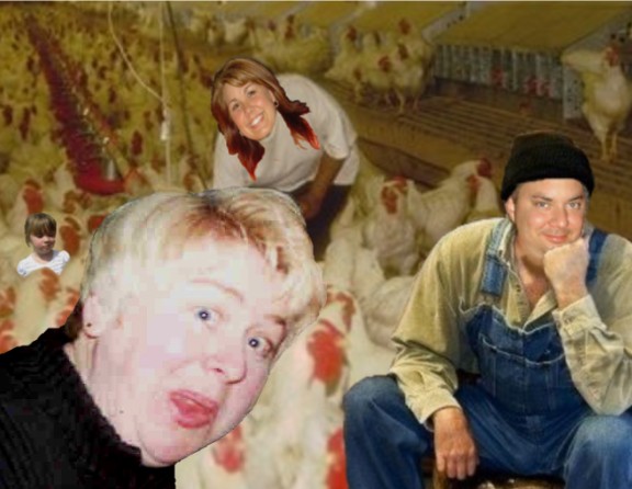 Tundra Inn. Amazingly the couple found a room even with a Packer game in town. Chris Richey is a farmer by nature but also moonlights as a cop for the state of Indiana and as can be seen above he gets the whole family involved with the chickens in his care. The Richeys do not attend the game every year but make a habit of showing up whenever they can get someone to come over and pick the eggs while they are gone. Normally they would depend on Joanne Poquette but she is also attending the game and will be unavailable for the chore. In cases like this Richey usually relies on one of his pistol packing colleagues to fill in in the chicken barn. When they are not available his dad takes over. As can be seen in the photo even Anya is in on the chores but the newest child Reese is not allowed to be around the animals most probably because she is too mean and may hurt the chickens. Even Chris Richey says that she is too mean and has to be kept away from most other normal children, she is allowed to play with all the Poquette offspring however.
