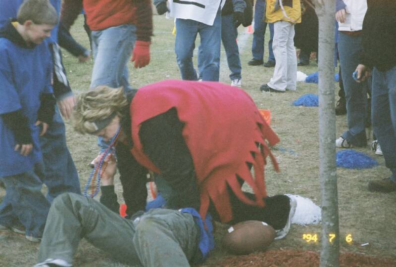 A major faux pa occurred the day of the game by forgetting an important part in our campaign to acquire an electronic clock for our scoreboard. As you know we are attempting to raise money to pay for the adding of an electronic countdown clock to our scoreboard to make the game run smoothly and allow players to better judge the time remaining in a key part of the game. In a plan conceived earlier this year a calendar was to be produced by Tim Lade to sell for profit which would have a collage of photos for each month along with all the known birthdays. Because of my own inadequacies I did not get the photos needed to Tim Lade in a timely manor, therefore he worked feverishly to finish the master piece in time for TB V and placed it in Jo Anne's car. We were supposed to show the calendar to everyone and take orders, however everyone forgot about it and it probably still sits in Joan's car. I am making the pitch here and letting everyone know that this wonderful calendar will be available in time for Christmas Eve if you still would like to have one. Because the cost of producing the calendar is high we are asking for the money up front and you will receive the calendar in time for Christmas. To make the deal even more sweet we are throwing in a copy of the edited film of the Turkey Bowl on DVD. Scott Treml has agreed to produce a DVD video which we will duplicate and include with your calendar for $25. That's right you get the 12 month award winning Poquette Calendar and a copy of the Turkey Bowl V DVD all for just $25, but you must act now! You can order by contacting us here at the Kat and Mick Report 920-869-2368 or (click)katandmick@aol.com. We will have your order ready for Christmas Eve if you order now. That's all the news that is news, see ya.