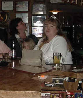 Friday was thought to be a record crowd at the chicken night ritual, however as things go the crowd was small. Again to try to make attendance grow the people at Cliff and Ceils gave out extra food and drinks to the people who did attended. This reporter even invited extra people to the friday night extravaganza and they did show up, my thanks to Randy and Bonnie and Aimee Meanie Miney Moe (AMMM for short) who helped to try to make the event have a record turnout. As it turns out the people who are the bread and butter crowd of Chicken Night are the ones who didn't make it. Queen Jean Poquette Hansen and her son Prince Ben were on hand to greet the newcommers to Chicken Night.
