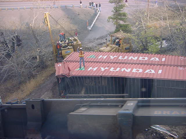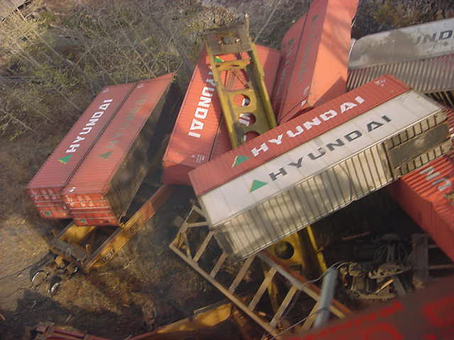 In a scary situation made worse by frightened passengers tragedy was avoided again by the writer of this column. While I am ready and willing to fight terrorists, criminals, and deviants to keep passengers safe on the train I am traveling on, I usually do not have to worry about Mother Nature complicating matters. This time my skills and ingenuity were tested nearly to their limits as disaster loomed in front of us. Traveling on what once was the Great Northern Railroad main line in Montana now owned by the Burlington Northern Santa Fe Rail we encountered high winds, which we thought of as no threat. This did however cause problems for the train just ahead of us which derailed on a bridge and took the train and part of the structure into the ravine below. With our train on its heels and unable to stop the conductor informed me of the dilemma and immediately I sprang into action. I ran ahead of the train which was struggling to stop but being pushed ahead by the strong winds, borrowing some pry bars from the work crew and grabbing some rail lying by the side of the line I quickly fashioned a patch for the broken bridge. As the fully loaded passenger train approached I summoned all the workmen from around the area and shored up the temporary structure with men prying up on the rails with all the rail, ties, and lumber we could find in the area. Miraculously the train pulled through with out incident as I knew it would. As it squealed to a stop past the bridge I decided to check on the engineer whom I did not see in the locomotive window as it rolled by. When I entered the locomotive door I found him lying on the floor gasping for breath. Upon seeing me he grasped his chest and passed out. I immediately diagnosed his condition as a heart attack and started CPR with one hand while calling for help on the locomotive radio with the other. A medical crew arrived in short order and took him off to hospital where he had emergency surgery for a blockage. The stress of the impending train wreck had been too much for his body and it reacted with a heart attack. I was informed by the doctors that had I not intervened he would have surly died.