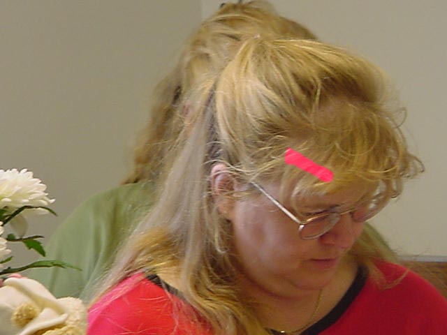 Jean Poquette Hansen has aquired a new job at the Wellness Center doing what she does best, data entry. She will continue with her Chicken Night Monarchy and reign over her Chicken Night Subjects. While in Belvidere she was the first one in "The Fat Club" to try the auto check out machine at K-Mart. She liked it and the Queen predicts that it will be a grand success. The Queen had a nasty scar on her forhead from the curling iron when she was doing her hair that morning.