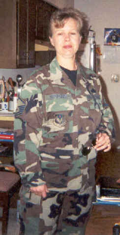 NOTE THE LACK OF AN ADEQUATE BUST LINE ON HER BDU'S