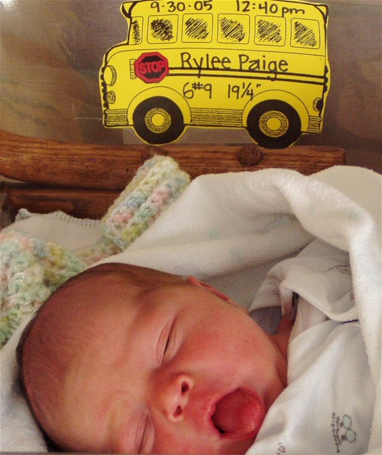At 12:40 PM Saturday Rylee Paige Poquette was born to Rick and Bobbie making this their second child. Rylee who was actually due on Sunday (today) arrived one day early and weighed in at 6 lbs. 9oz. with a total length of 19 1/4 inches. Ryker who was uninspired by the birth seemed more concerned with hiding in the closet then in his baby sister. Dick and Colleen on the other hand couldn't be happier that they now have a second grand child they can spoil.