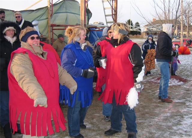 The XPFL cheerleaders keep the antifreeze flowing to keep warm