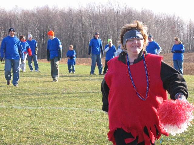 With the Red Gobblers ahead cheerleader Trixie Sobieck is now happy.