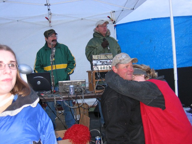 The scoreboard girls Brittany, and Dawn get some help from the "mini" cheerleaders.