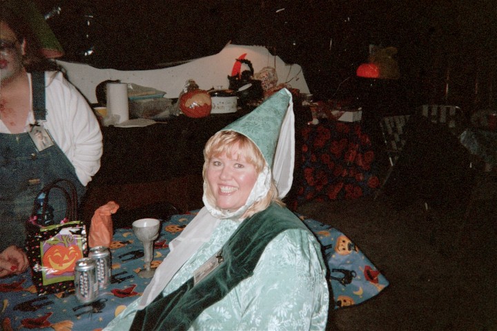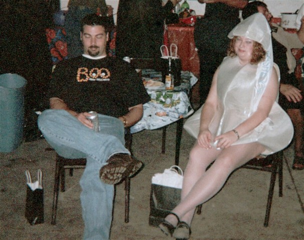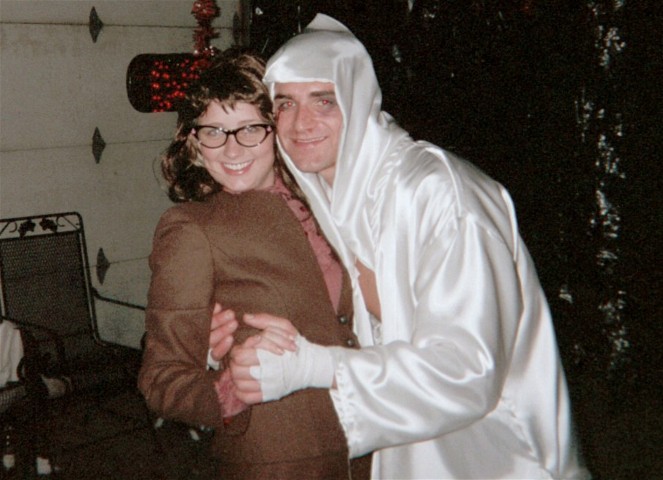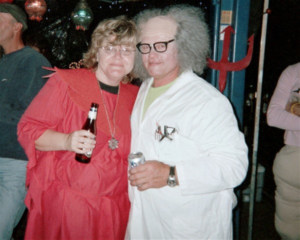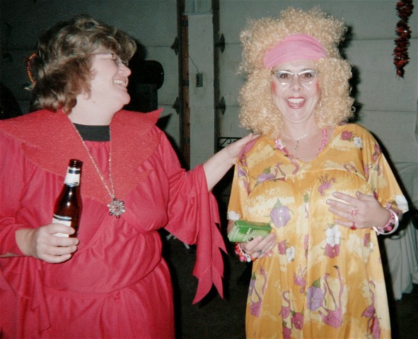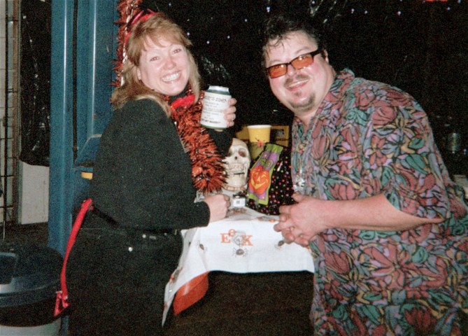 BRENDA THE GOOD WITCH POSES WITH KAMR'S FAMOUS SPORTS WRITER S. LYLE OCONNOR FOR A PHOTO HE WILL LATER AUTOGRAPH FOR HER