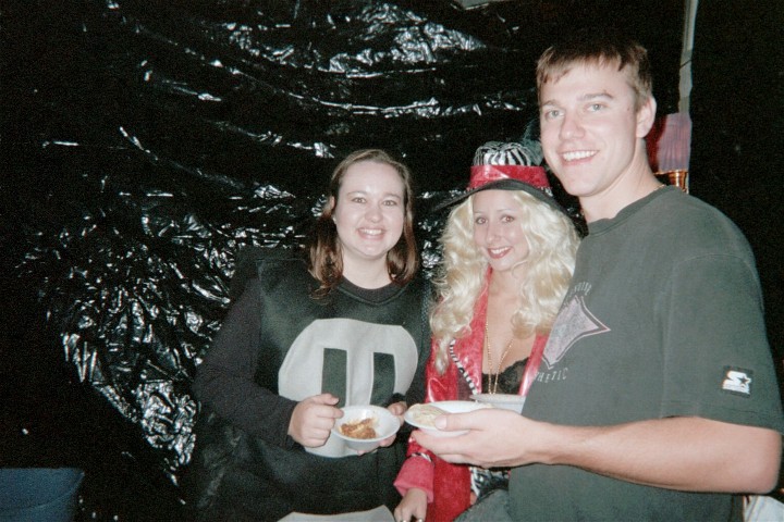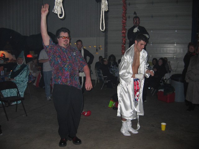JAMES BRINGS A FRIEND WHO STAYS UPRIGHT THIS YEAR, WHILE JEAN POQUETTE HANSEN EATS SNACKS FROM HER LAP