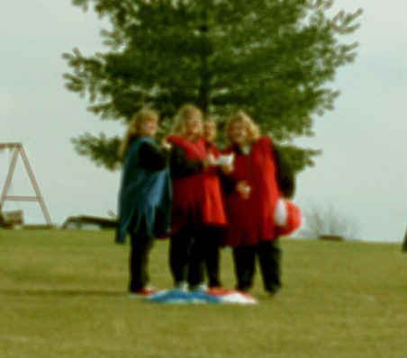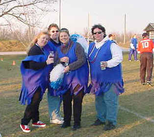 AS THE AFTERNOON WEARS ON, THE RED GOBBLER CHEERLEADERS SEEMED MORE FUZZY AS SEEN THROUGH THE EYES OF THE BLUE JELLO CHEERLEADERS