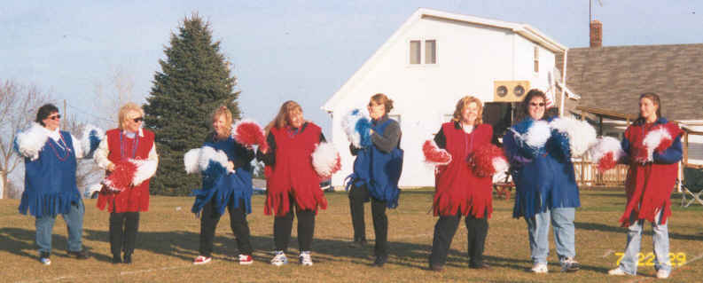 THE BLUE JELLO CHEERLEADERS POSE FOR A PUBLICITY PHOTO