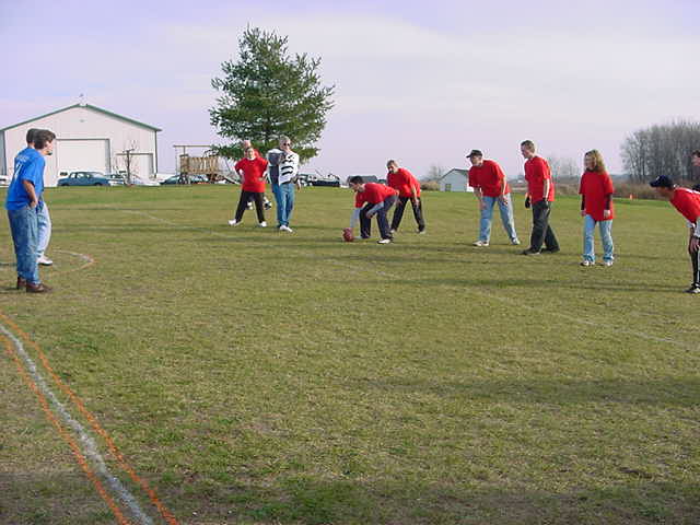 9 PLAYERS PER TEAM - TEAMS ARE LIMITED TO 9 PLAYERS BECAUSE OF THE SMALL FIELD. IF A TOTAL OF 18 PLAYERS ARE NOT AVAILABLE THEN PLAYERS MAY BE TRADED TO THE OPOSING TEAM TO MAKE THE SIDES EVEN. SHOULD AN ODD NUMBER OF PLAYERS OCCUR THEN 1 OR MORE PLAYERS MUST SIT OUT.